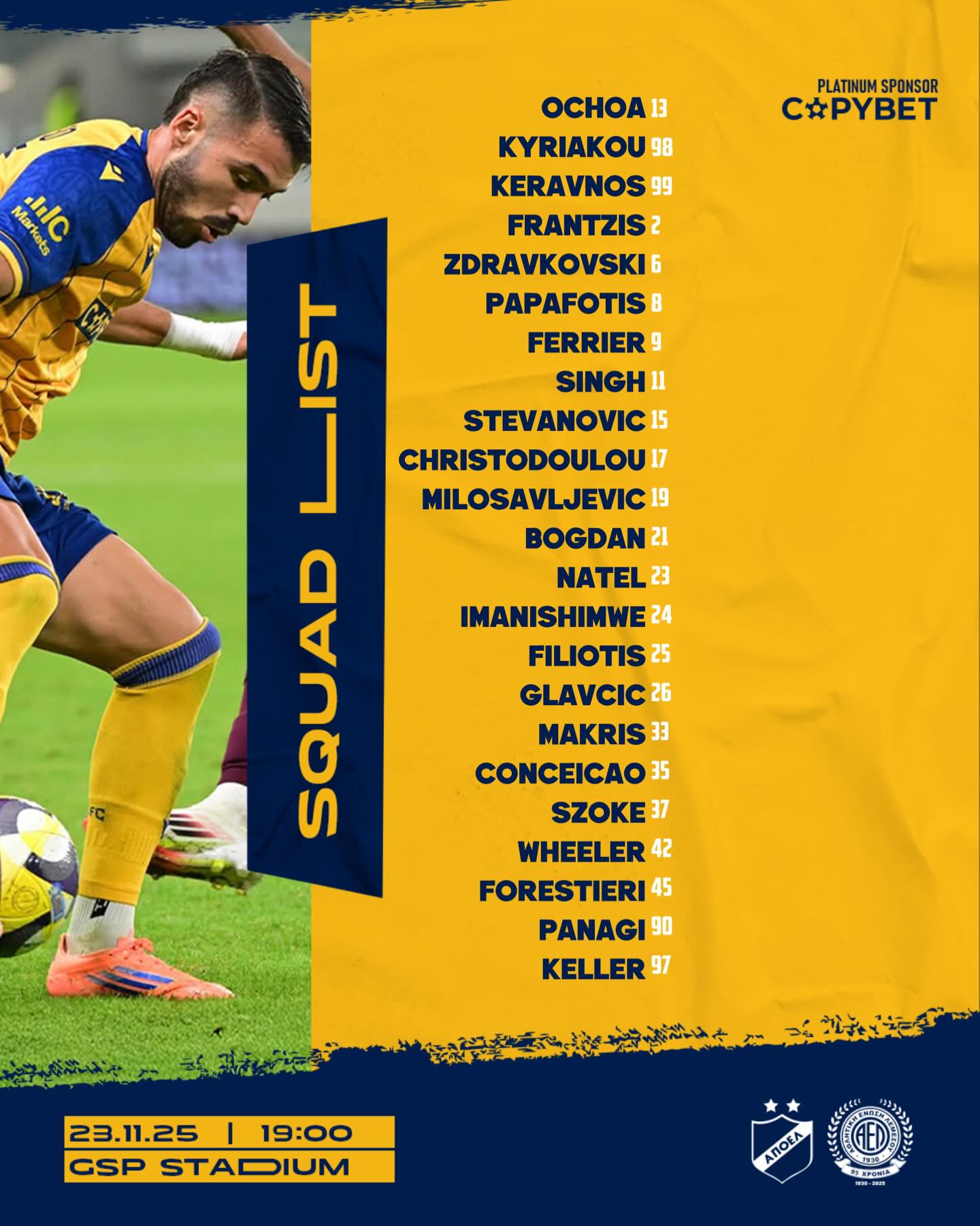 Δείτε την αποστολή της ομάδας της Λεμεσού: