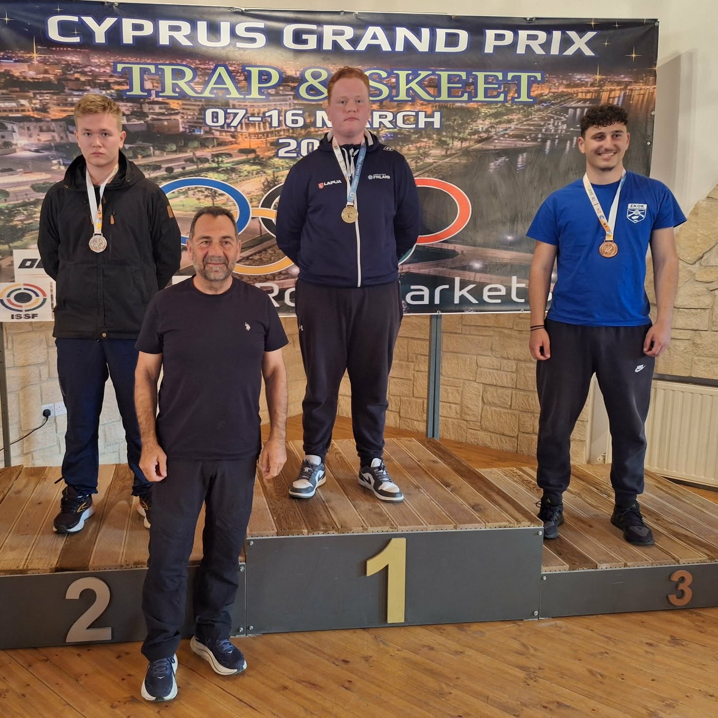 Οι δύο από τους κορυφαίους Κύπριους Σκοπευτές του ΤΡΑΠ, εξουδετέρωσαν τον Φινλανδό Juho Makella, ο οποίος προκρίθηκε στον τελικό με την καλύτερη επίδοση 120/125, αλλά περιορίστηκε στην τρίτη θέση, κατακτώντας το χάλκινο μετάλλιο με 19 επιτυχίες.