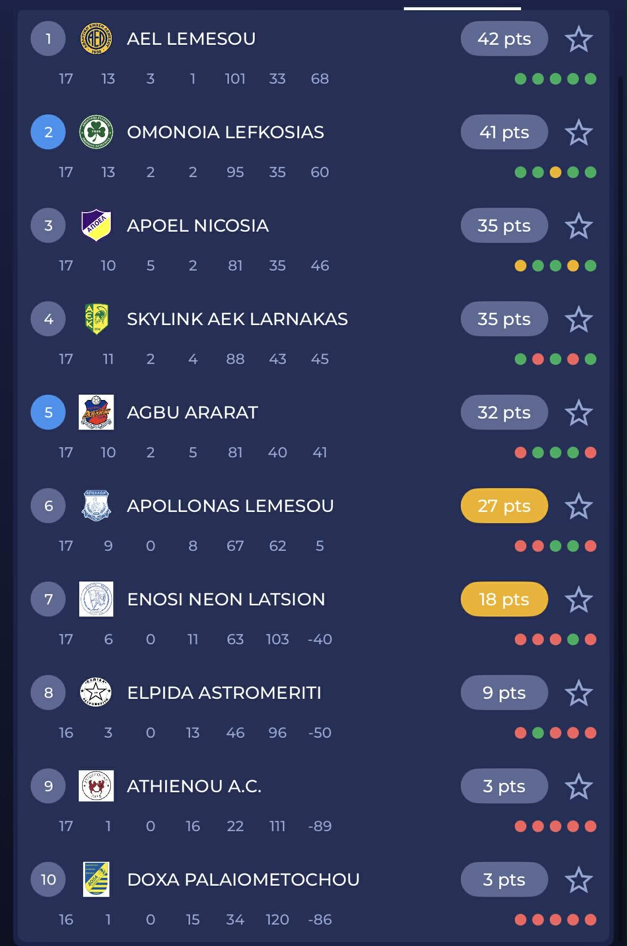 Η ΑΕΛ μετά την χθεσινή ευρεία νίκη με 12-0 παραμένει πρώτη, όμως νιώθει την… ανάσα της Ομόνοιας που είναι στο -1.