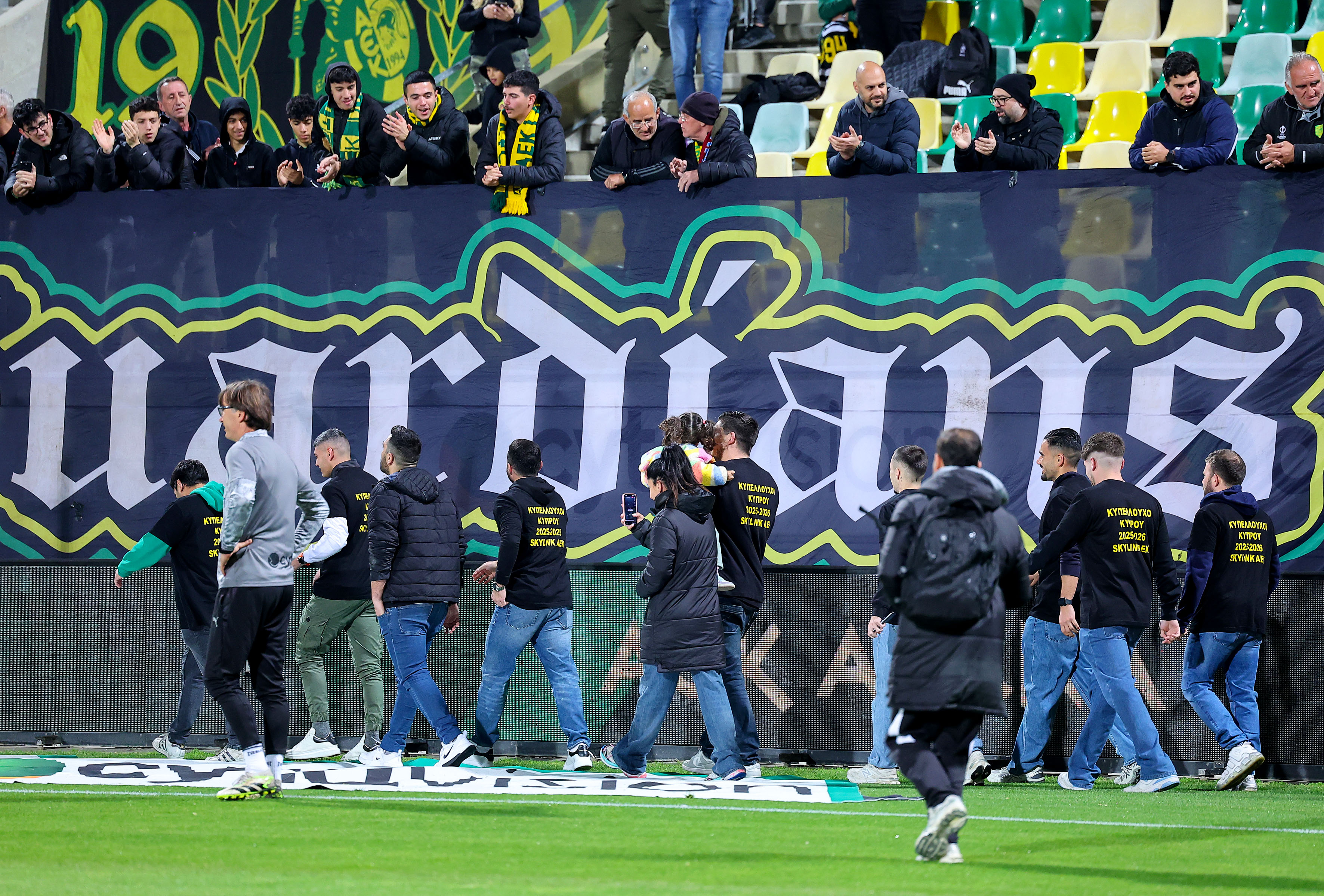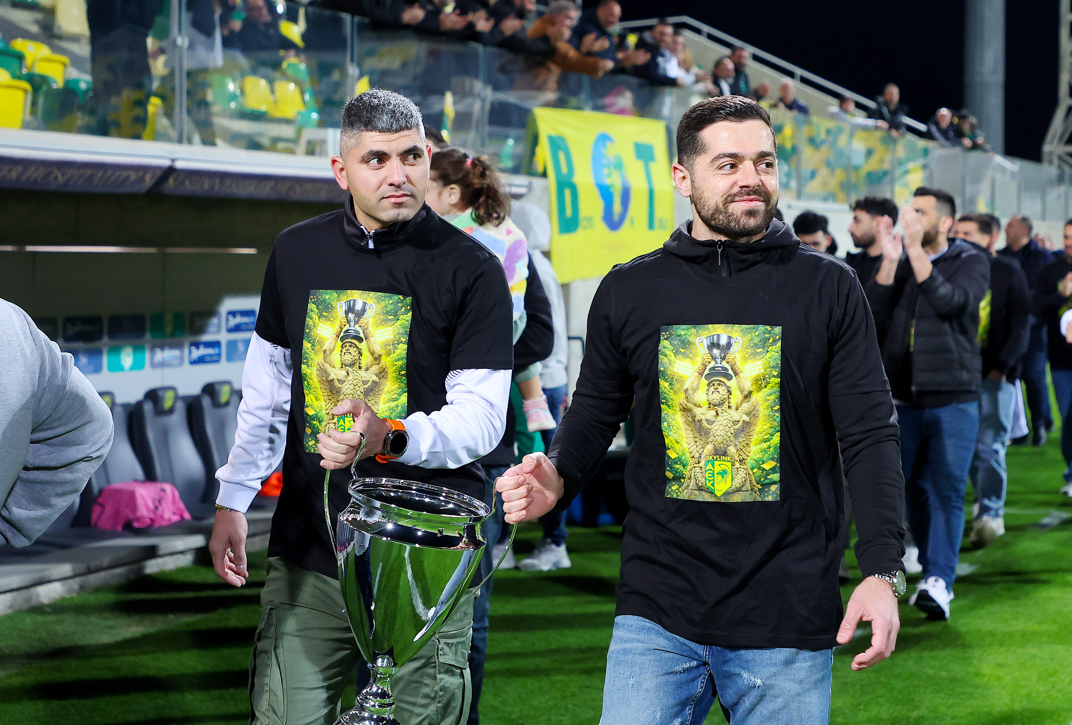 Παρέα με το τρόπαιο, έκαναν τον γύρο του θριάμβου ενώπιον των οπαδών των κιτρινοπρασίνων, πριν από την έναρξη της αναμέτρησης με τον Ακρίτα.