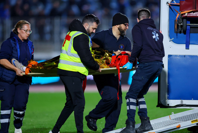 Το παιχνίδι διακόπηκε για περίπου 10 λεπτά μέχρι να του παρασχεθούν οι πρώτες βοήθειες έτσι ώστε να μπορέσει να μπει στο ασθενοφόρο.