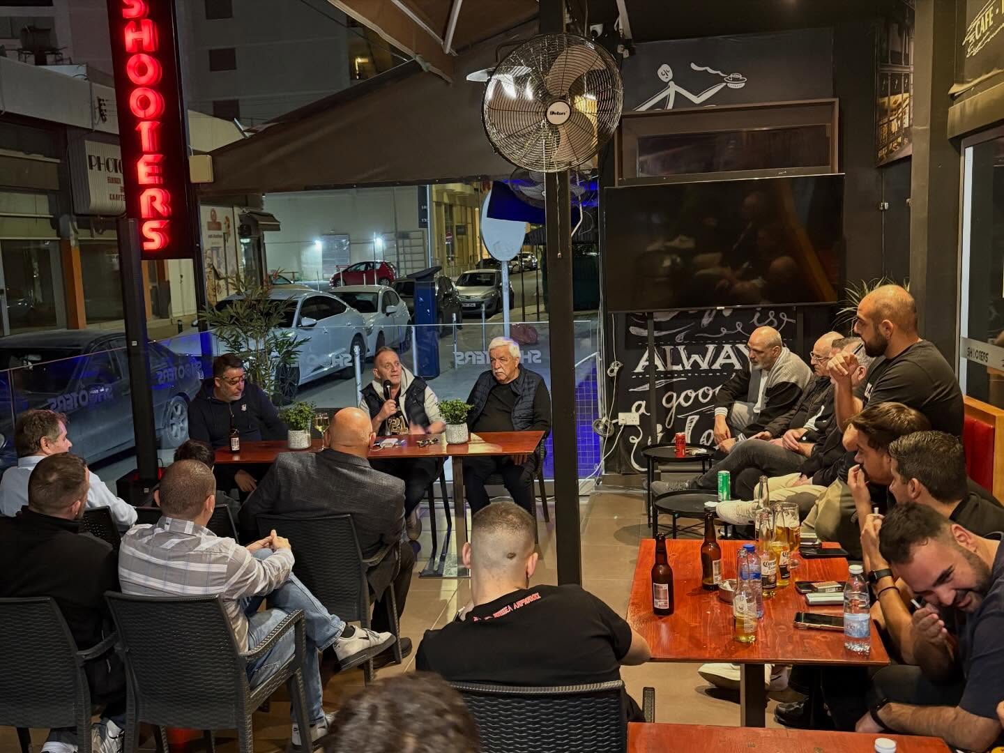 Πραγματοποιήθηκε χθες στην Λάρνακα, η δεύτερη στη σειρά συνάντηση της διοίκησης με τον κόσμο της ομάδας μας. Παρόντα στην συνεύρεση ήταν και μέλη του ομίλου βετεράνων ποδοσφαιριστών ΑΠΟΕΛ. Ο κόσμος είχε την ευκαιρία χωρίς καμία αντζέντα, να θέσει τις ερωτήσεις που επιθυμούσε προς τον πρόεδρο της εταιρείας Χάρη Φωτίου. Διεξήχθει μια ανοικτή και ειλικρινής συζήτηση για όλα τα ζητήματα που αφορούν τον ΑΠΟΕΛ. Επιθυμούμε να ευχαριστήσουμε θερμά το Shooters Bar / Game Lounge για την φιλοξενία. Η επόμενη συνάντηση θα πραγματοποιηθεί στο οίκημα του Παρθενώνα Λατσιών στις 27/04, στις 19.30. Η αναβολή της λόγω του αγώνα futsal δεν υφίσταται πλέον και θα διεξαχθεί κανονικά όπως ήταν προγραμματισμένη.