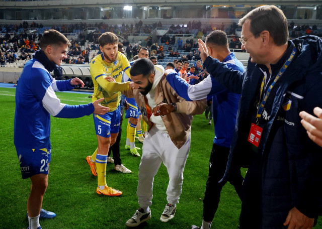 Μάλιστα οι συμπαίκτες του και το τεχνικό τιμ του ΑΠΟΕΛ ετοίμασαν αψίδα στον Τσεμπάκ ο οποίος περνώντας από μέσα δέχθηκε και αρκετές... καρπαζιές.