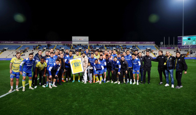 Ο Μαροκινός ακραίος μπακ των γαλαζοκιτρίνων συμπλήρωσε τριψήφιο αριθμό συμμετοχών με τη φανέλα της ομάδας και παρέλαβε μία καδρωμένη φανέλα με το όνομά του και τον αριθμό 100.