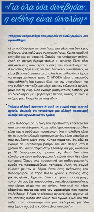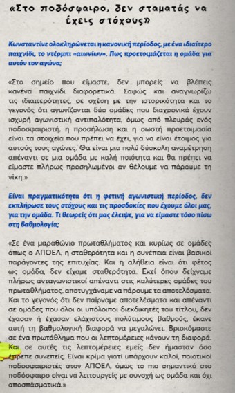 Ο Κωνσταντίνος Λαΐφης μίλησε στο περιοδικό του ΑΠΟΕΛ ενόψει του αγώνα με την Ομόνοια στο ΓΣΠ.