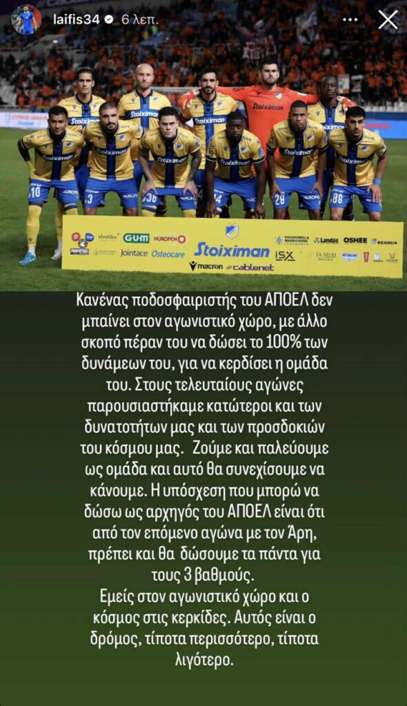 Αρχηγικό μήνυμα από τον Κωνσταντίνο Λαΐφη μετά τα τελευταία ανεπιτυχή αποτελέσματα του ΑΠΟΕΛ