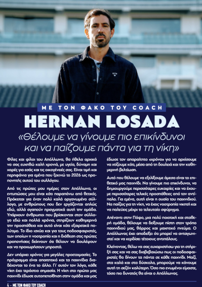 Οι τοποθετήσεις του Ερνάρ Λοσάδα στο match programme της ομάδας ενόψει του παιχνιδιού με την Πάφος FC.