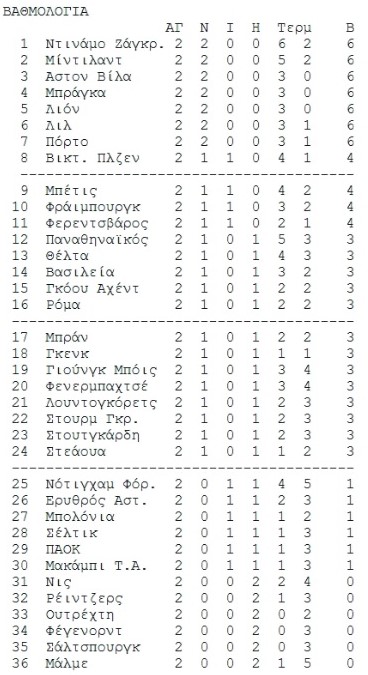 Europa League: Μεγάλα διπλά για Άστον Βίλα, Μίντιλαντ και Ντινάμο Ζάγκρεμπ - ΒΑΘΜΟΛΟΓΙΑ