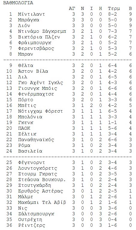 Τα δεδομένα στο Europa League μετά την 3η αγωνιστική.