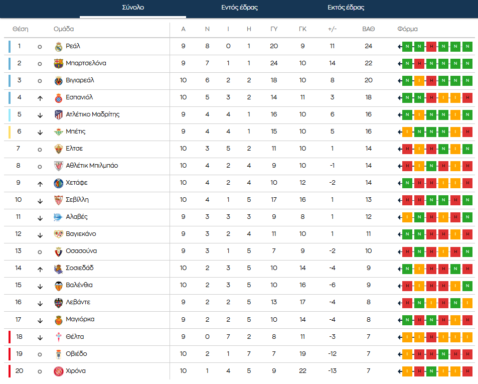 Συνοπτικά το πρόγραμμα της 10ης αγωνιστικής της La Liga: