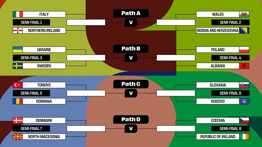 Γνωστά έγιναν τα ζευγάρια και οι διασταυρώσεις στα ευρωπαϊκά και στα διηπειρωτικά playoffs, από τα οποία θα προκύψουν τα έξι τελευταία εισιτήρια για το Παγκόσμιο Κύπελλο του 2026.