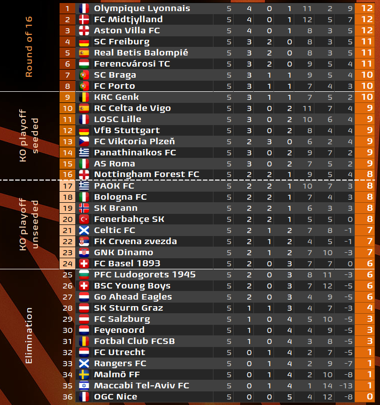 Το πρόγραμμα της 6ης αγωνιστικής της League Phase του Europa League.