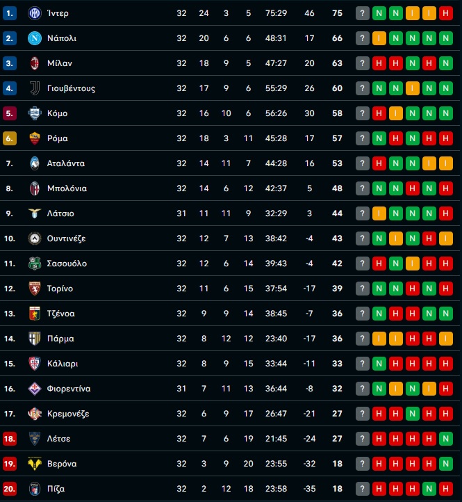 Οι «νερατζούρι» έχουν ανοίξει πλέον τη διαφορά τους στην κορυφή της Serie A στους 9 βαθμούς, αφού οι… υποτιθέμενοι διεκδικητές της κορυφής απέδειξαν πως τουλάχιστον για φέτος, αδυνατούσαν ν’ ανταποκριθούν στις ανάγκες του κυνηγιού της κορυφής.Η Ίντερ, λοιπόν, μπορεί να στεφθεί και μαθηματικά Πρωταθλήτρια Ιταλίας μετά το 2024, σε… 13 μέρες από σήμερα!