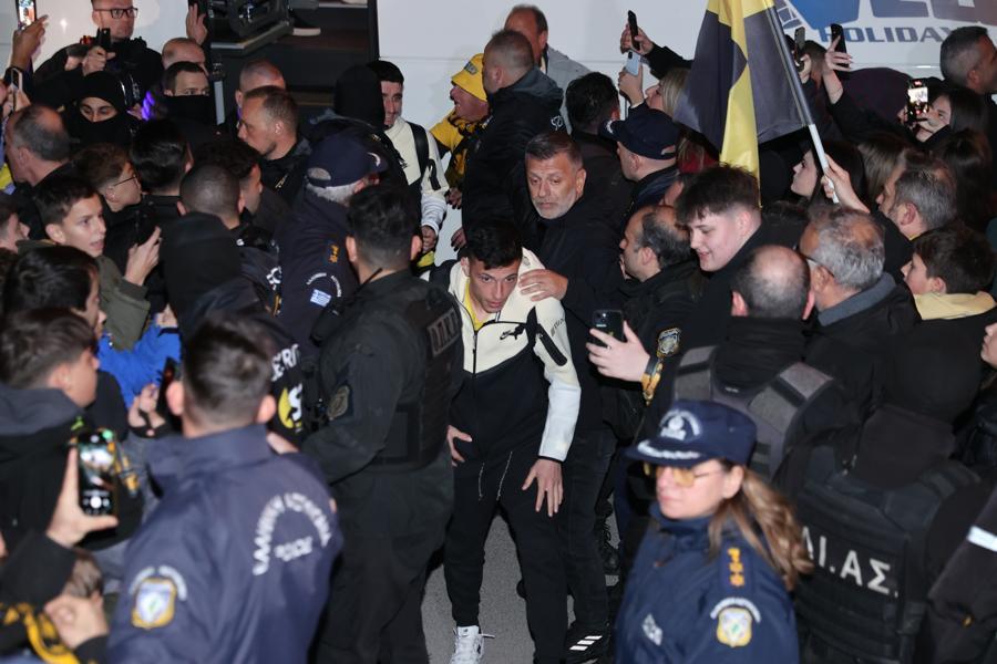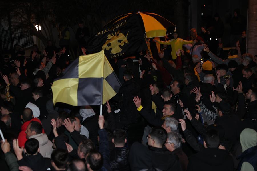 Θερμή υποδοχή επεφύλαξε ο κόσμος της ΑΕΚ στην «κιτρινόμαυρη» αποστολή στις Σέρρες.