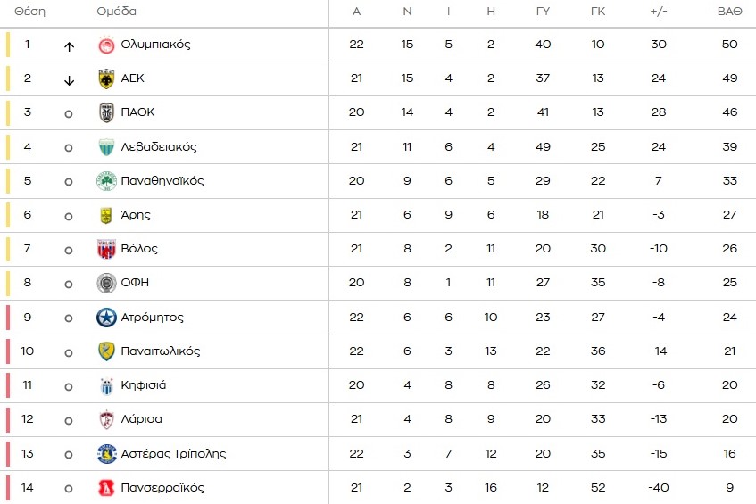 ΒΑΘΜΟΛΟΓΙΑ SUPER LEAGUE 2025/26