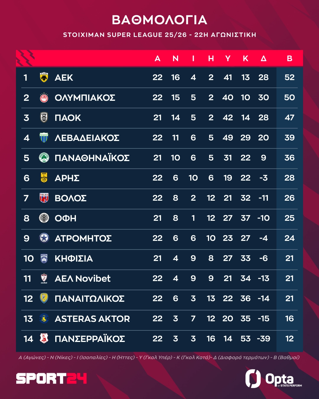 ΑΕΚ – 52 βαθμοί