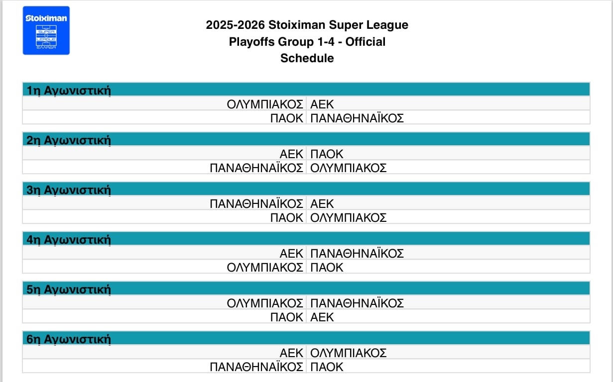 Γνωστό έγινε το πρόγραμμα των Playoffs που θα κρίνουν τον πρωταθλητή.