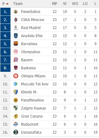 Μετά την ήττα από την Αναντολού Εφές, ο Ολυμπιακός τέθηκε εκτός μάχης για την τετράδα που δίνει πλεονέκτημα έδρας στα πλέι οφ της Euroleague, ενώ δύσκολα θα προλάβει την πέμπτη θέση που θα τον φέρει αντιμέτωπο με τους Τούρκους.