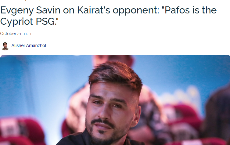Ο Πρόεδρος της Freedom24 Krasava ΕΝΥ, Γεβγκένι Σάβιν, μίλησε στην ιστοσελίδα BorodAbata.kz και αναφέρθηκε στον αγώνα της Καϊράτ με την Πάφο FC, εκφράζοντας τον σεβασμό του προς την κυπριακή ομάδα, αλλά και την πίστη του ότι η Καϊράτ μπορεί να πάρει αποτέλεσμα.