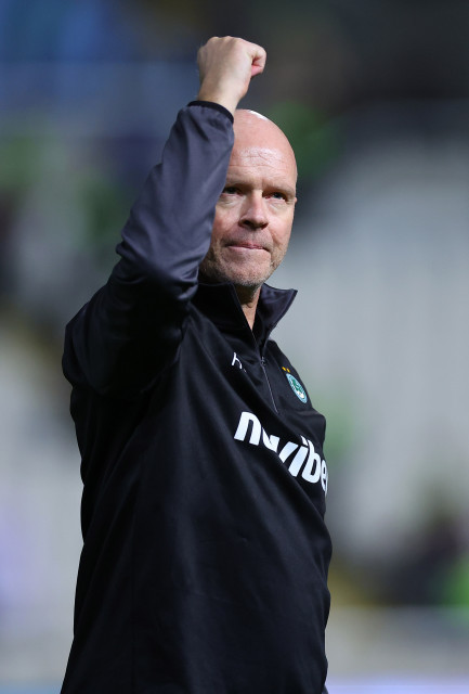 Η σφιγμένη γροθιά του Χένινγκ Μπεργκ μετά το τέλος των νικηφόρων αγώνων της Ομόνοιας. Μία συνήθεια από τη πρώτη κιόλας σεζόν του Νορβηγού στον πάγκο των πρασίνων, που έγινε λατρεία και φέτος!