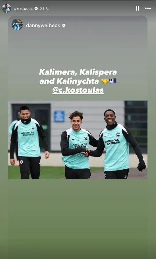 Ο 18χρονος σέντερ φορ, ο οποίος πρόσφατα επιβραβεύτηκε και με την κλήση του στην Εθνική Ελλάδας από τον Ιβάν Γιοβάνοβιτς, φαίνεται πως έχει... κερδίσει το στοίχημα των αποδυτηρίων στην Μπράιτον, με τον Ντάνι Γουέλμπεκ, έναν εκ των κορυφαίων ποδοσφαιριστών της ομάδας, να... μιλάει ελληνικά για χάρη του.