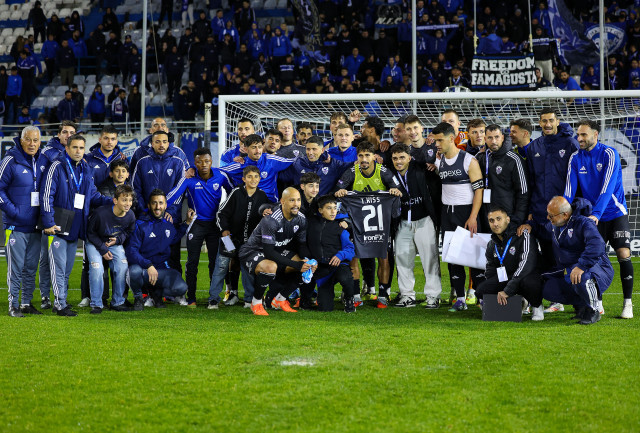 Ποδοσφαιριστές και σταφ της «Κυρίας», μαζί με τον Ταμάς Κις, πόζαραν μπροστά από το πέταλο κρατώντας την φανέλα με τον αριθμό του άτυχου ποδοσφαιριστή της ομάδας ο οποίος τραυματίστηκε στο προηγούμενο ντέρμπι με την Πάφο εκτός έδρας.