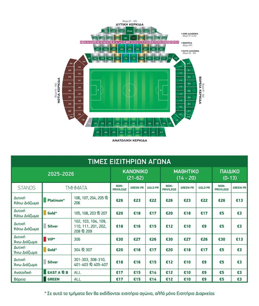 Ισχύει η ταξιθέτηση των εισιτηρίων του αγώνα και των εισιτηρίων διαρκείας.Τα σημεία πώλησης των εισιτηρίων