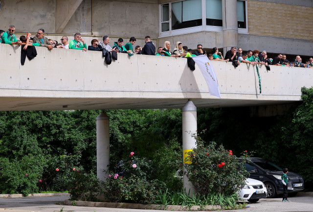Εκατοντάδες φίλοι των πρασίνων περίμεναν κυριολεκτικά στα κάγκελα την άφιξη του πούλμαν που μετέφερε την αποστολή και αποθέωσαν τους ποδοσφαιριστές.