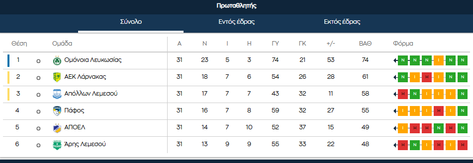 ΒΑΘΜΟΛΟΓΙΑ: Πώς παίρνει τον τίτλο η Ομόνοια από την επόμενη αγωνιστική