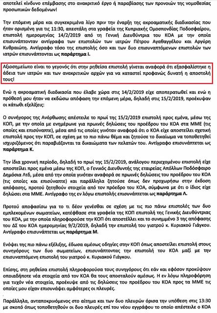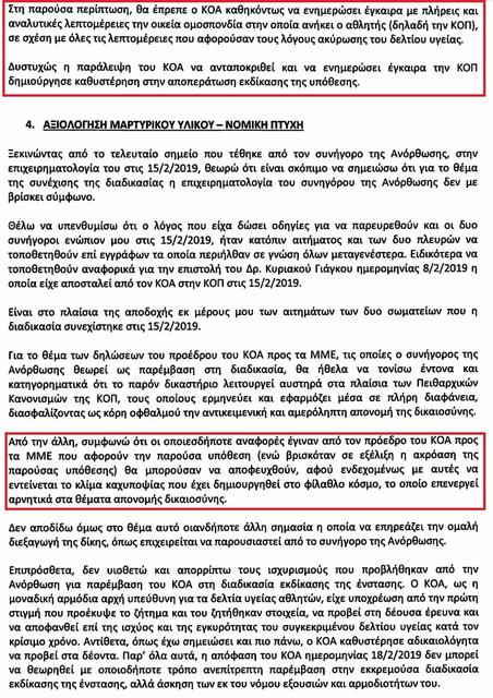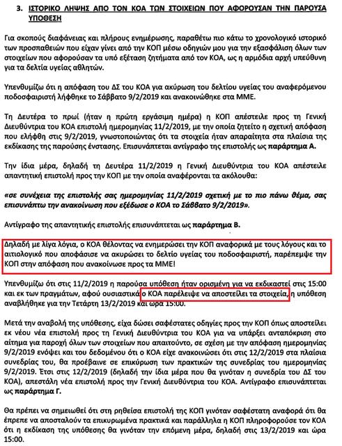 Διαβάστε αναλυτικά τις σελίδες 9-13 του κειμένου με το σκεπτικό του αθλητικού δικαστή, στις οποίες γίνεται λόγος στο χρονικό της λήψης στοιχείων από τον ΚΟΑ
