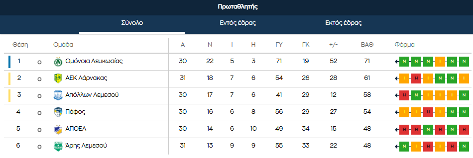 BAΘΜΟΛΟΓΙΑ: Δεν παίρνει (ακόμα) πρωτάθλημα η Ομόνοια