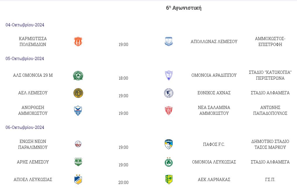 Σέντρα στην 6η αγωνιστική της Cyprus League by Stoiximan