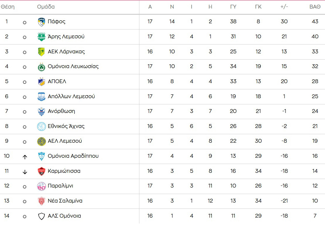 BAΘΜΟΛΟΓΙΑ: Tα πράσινα πισωγυρίσματα, το χαμόγελο της Πάφου και το «είμαι εδώ» της Ανόρθωσης