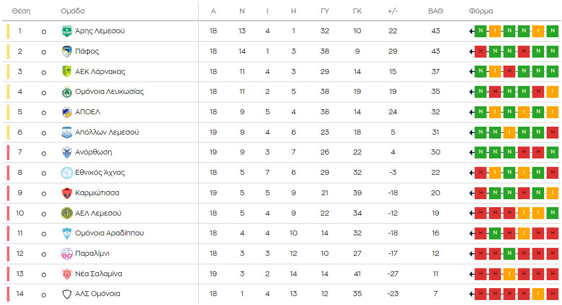 ΒΑΘΜΟΛΟΓΙΑ: Μεγάλη «μάχη» Απόλλων - Ανόρθωση για την 6η θέση, που γλυκοκοιτάζουν και πιο ψηλά