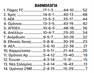 BAΘΜΟΛΟΓΙΑ: Η Πάφος πετάει, η εξάδα συζητιέται