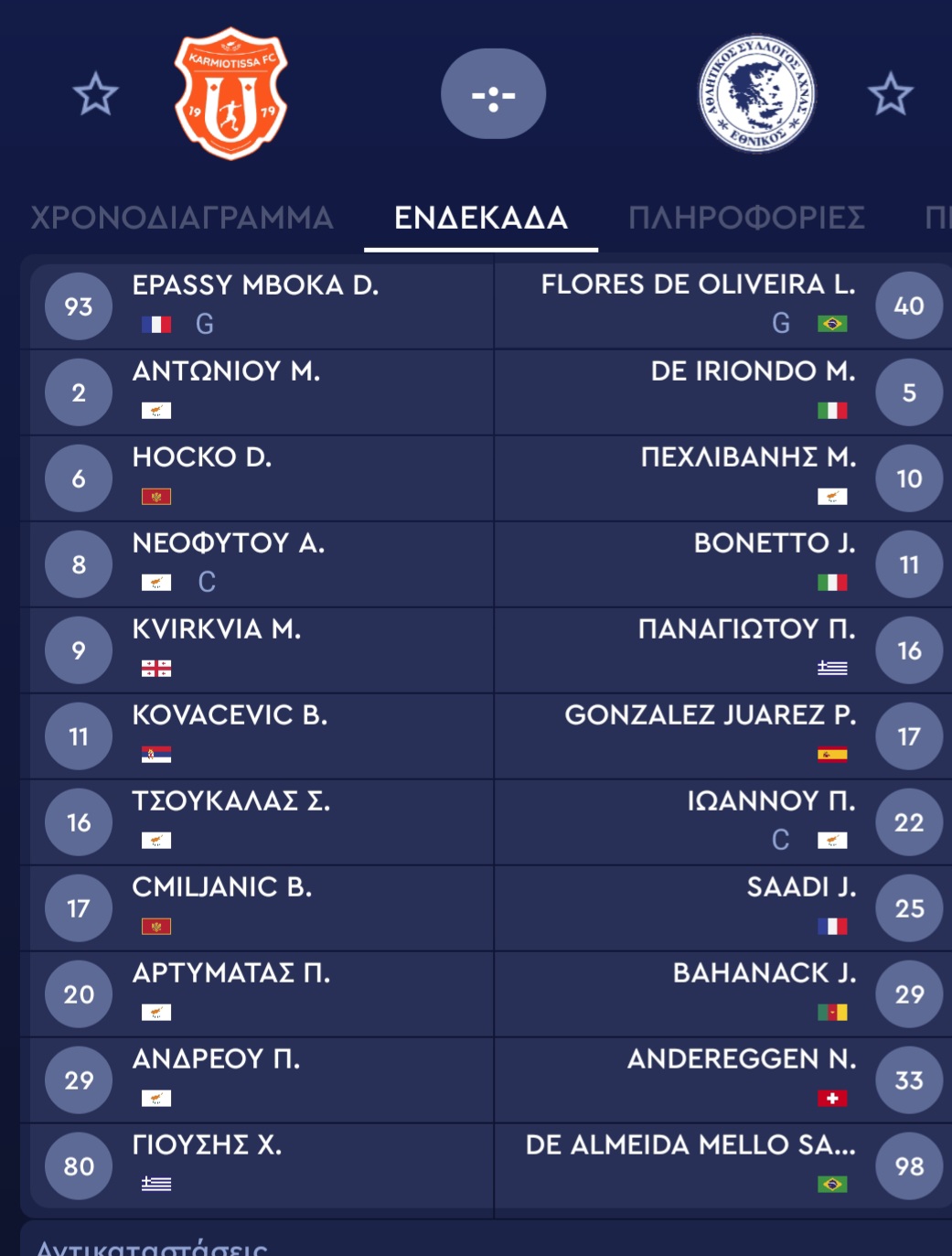 Οι εντεκάδες για Καρμιώτισσα και Εθνικό
