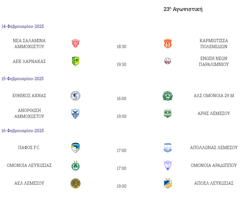 Προ των πυλών η 23η αγωνιστική της Cyprus League By Stoiximan η οποία ξεκινά ανήμερα της γιορτής των ερωτευμένων.