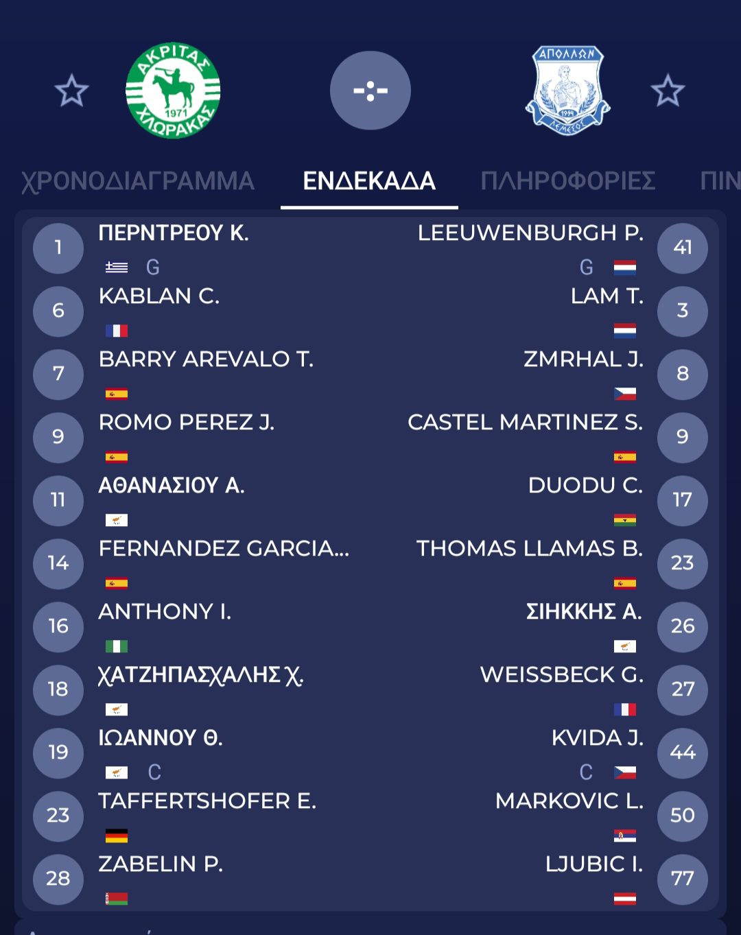 Οι συνθέσεις των δύο ομάδων για το παιχνίδι στο «Στέλιος Κυριακίδης»