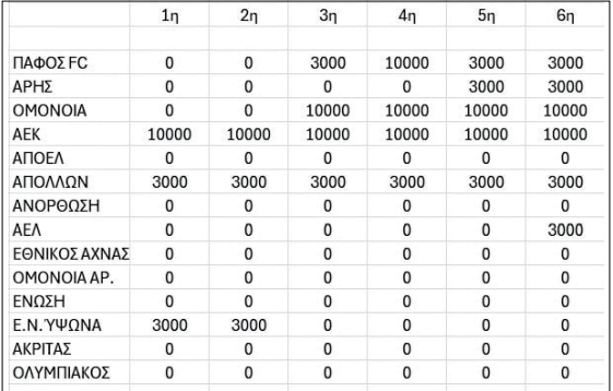 Τη… μερίδα του λέοντος πλήρωσε μέχρι στιγμής η ΑΕΚ, η οποία δεν έχει χρησιμοποιήσει ούτε έναν Κύπριο στην αρχική ενδεκάδα σε αυτές τις πρώτες έξι αγωνιστικές, φτάνοντας το ποσό των 60.000 ευρώ. Ακολουθεί η Ομόνοια με 40.000 ευρώ, η οποία είδε τις επιλογές της σε Κύπριους να περιορίζονται μετά τις αποχωρήσεις των Λοΐζου, Χάμπου και προηγουμένως του Κακουλλή, κάτι που αντικατοπτρίζεται και στο οικονομικό κόστος. Συγκεκριμένα, η ομάδα της Λευκωσίας κλήθηκε να καταβάλει 10.000 ευρώ σε καθεμία από τις τέσσερις αγωνιστικές που δεν χρησιμοποίησε Κύπριο, εν αντιθέσει με τους άλλους δύο αγώνες, όπου που δεν έβαλε το χέρι στην τσέπη.