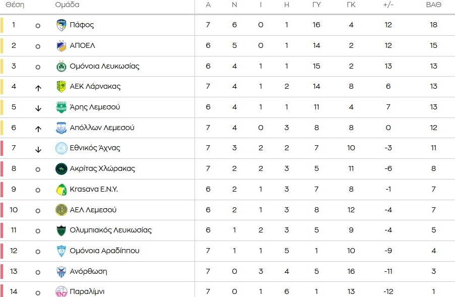 Τα δεδομένα στη Cyprus League by Stoiximan μετά από τη διεξαγωγή τεσσάρων αγώνων στην 7η αγωνιστική.