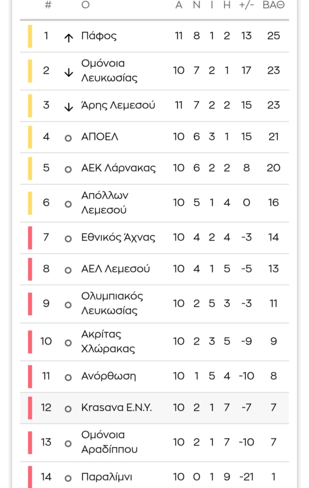 ΒΑΘΜΟΛΟΓΙΑ: H αναρρίχηση της Πάφου στην κορυφή και τα καυτά ντέρμπι που έρχονται