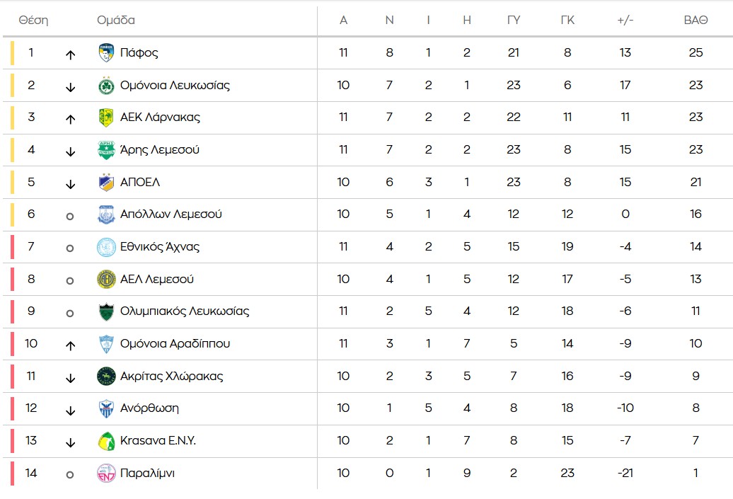 ΒΑΘΜΟΛΟΓΙΑ: Η τεσσάρα της ΑΕΚ, η νίκη - ανάσα της Ομόνοιας Αραδίππου και η συνέχεια
