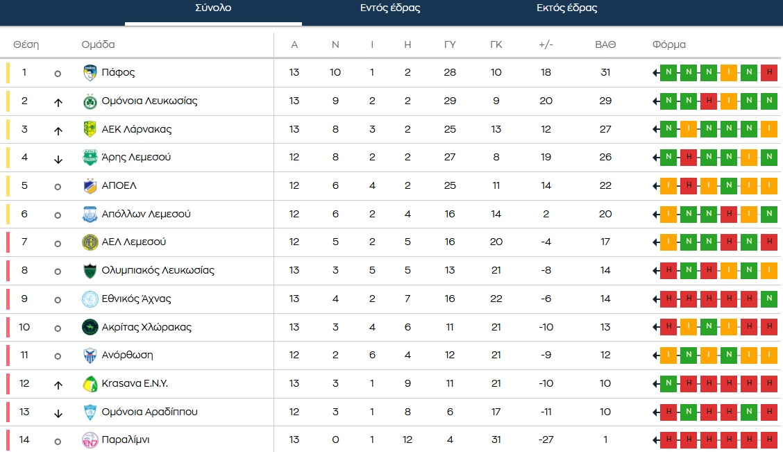 ΒΑΘΜΟΛΟΓΙΑ: Νίκησαν τα φαβορί και το... βλέμμα στα ντέρμπι της Κυριακής