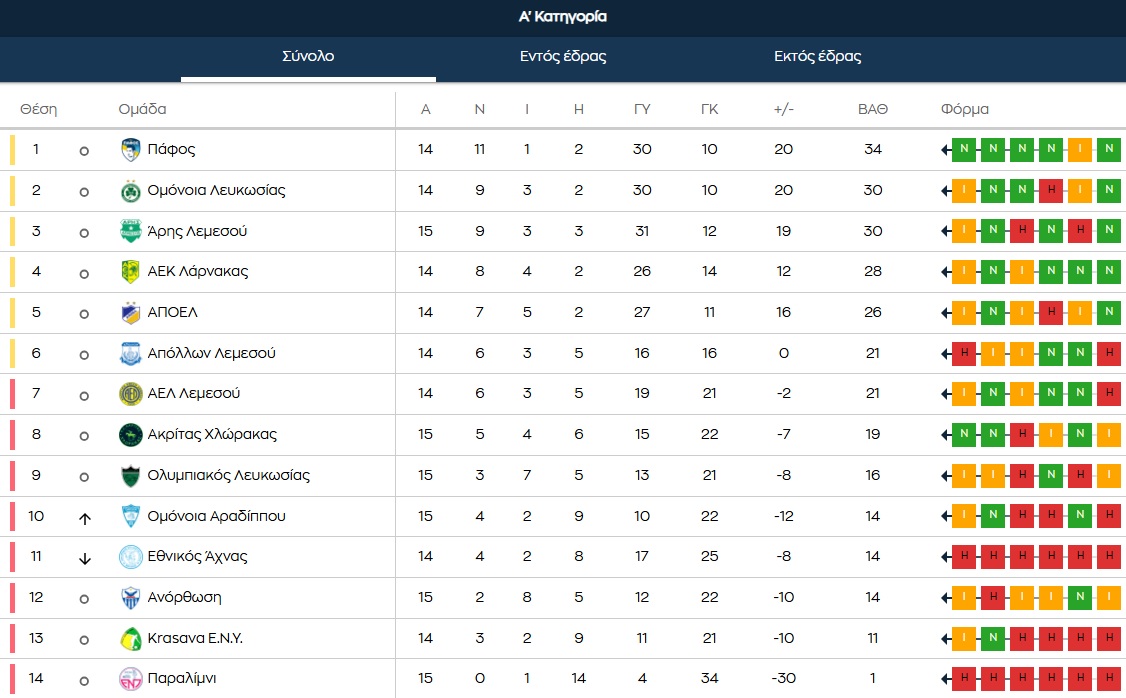 19:00 Πάφος - ΑΠΟΕΛ