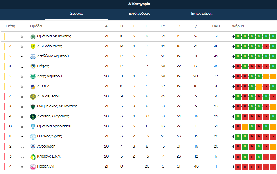Με τις δυο πρωτοπόρες στη βαθμολογία, Ομόνοια και ΑΕΚ, να παίρνουν τεράστια διπλά επί Πάφο FC και ΑΠΟΕΛ, και τον Απόλλωνα να ακολουθεί πλέον στην τρίτη θέση συνεχίστηκε η 21η αγωνιστικής της Cyprus League by Stoiximan, που ολοκληρώνεται το βράδυ της Δευτέρας (09/02).
