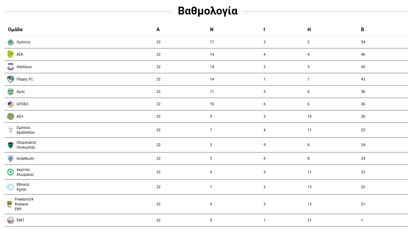 19:00 Ομόνοια Αρ. - ΑΕΚ