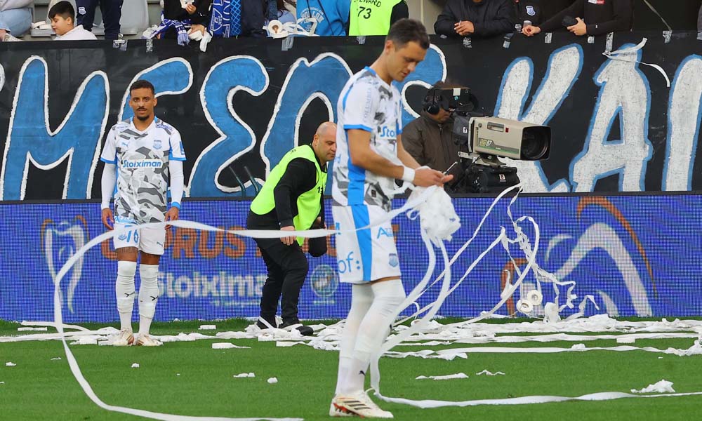- Ο αγώνας ξεκίνησε αλλά υπήρξε περίπου καθυστέρηση πέντε λεπτών εξαιτίας χαρτιών που ρίχθηκαν στον αγωνιστικό χώρο.