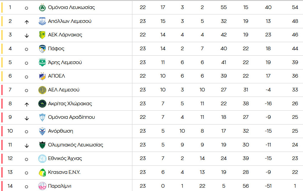 ΒΑΘΜΟΛΟΓΙΑ: Το προσπέρασμα του Απόλλωνα, η Πάφος που δεν μπορεί και η μάχη στο κάτω διάζωμα