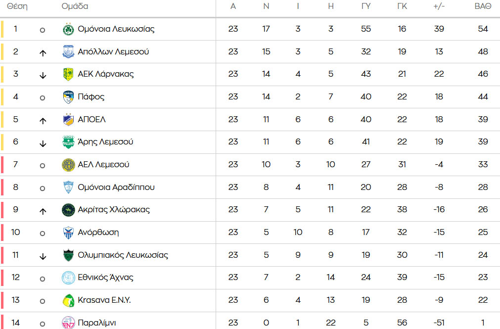 Δείτε πως έχουν διαμορφωθεί τα δεδομένα με το πέρας της 23ης αγωνιστικής της Cyprus League by Stoiximan.