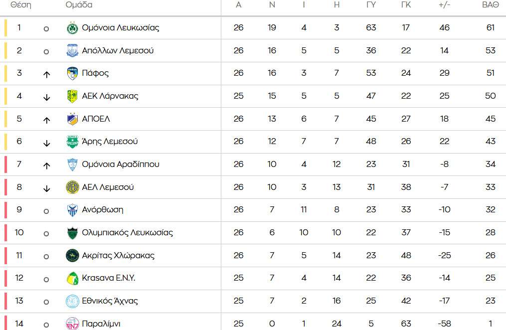 ΒΑΘΜΟΛΟΓΙΑ: Ο... τυφώνας Ομόνοια που χάρηκε διπλά και ο ΑΠΟΕΛ που δεν τα παρατάει!